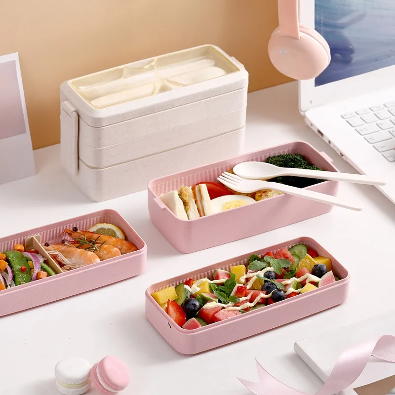 กล่องอาหารกลางวันสานจากฟางข้าวสาลีสไตล์ญี่ปุ่น 3 ชั้น
